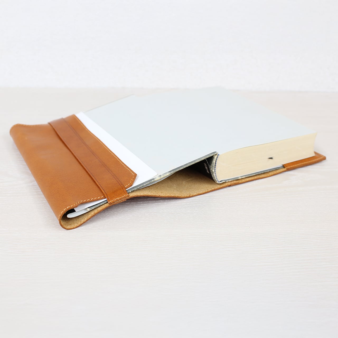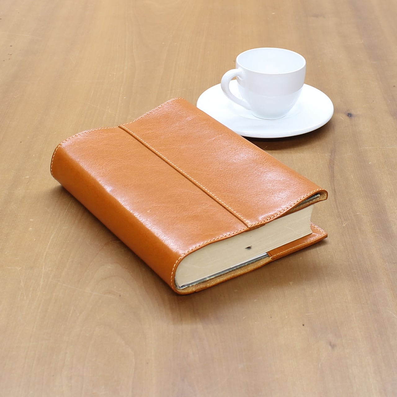 本革の風合いと繊細なステッチが特徴的。落ち着いたカラーバリエーションで、お気に入りの本をしっかりと守ります。ブックカバーを取り付けるだけで、大切な本の表紙を傷つけずに長く楽しむことができます。
